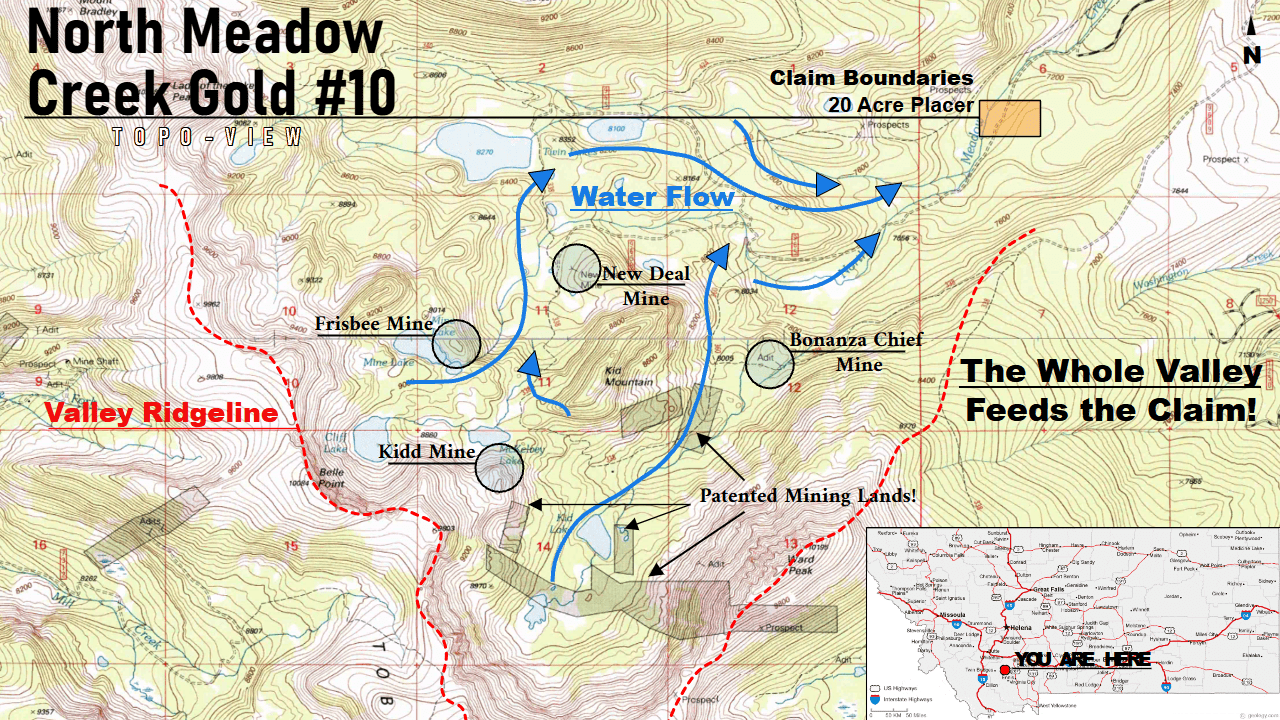 Here are the features of the "North Meadow Creek Gold #10" claims at a glance: