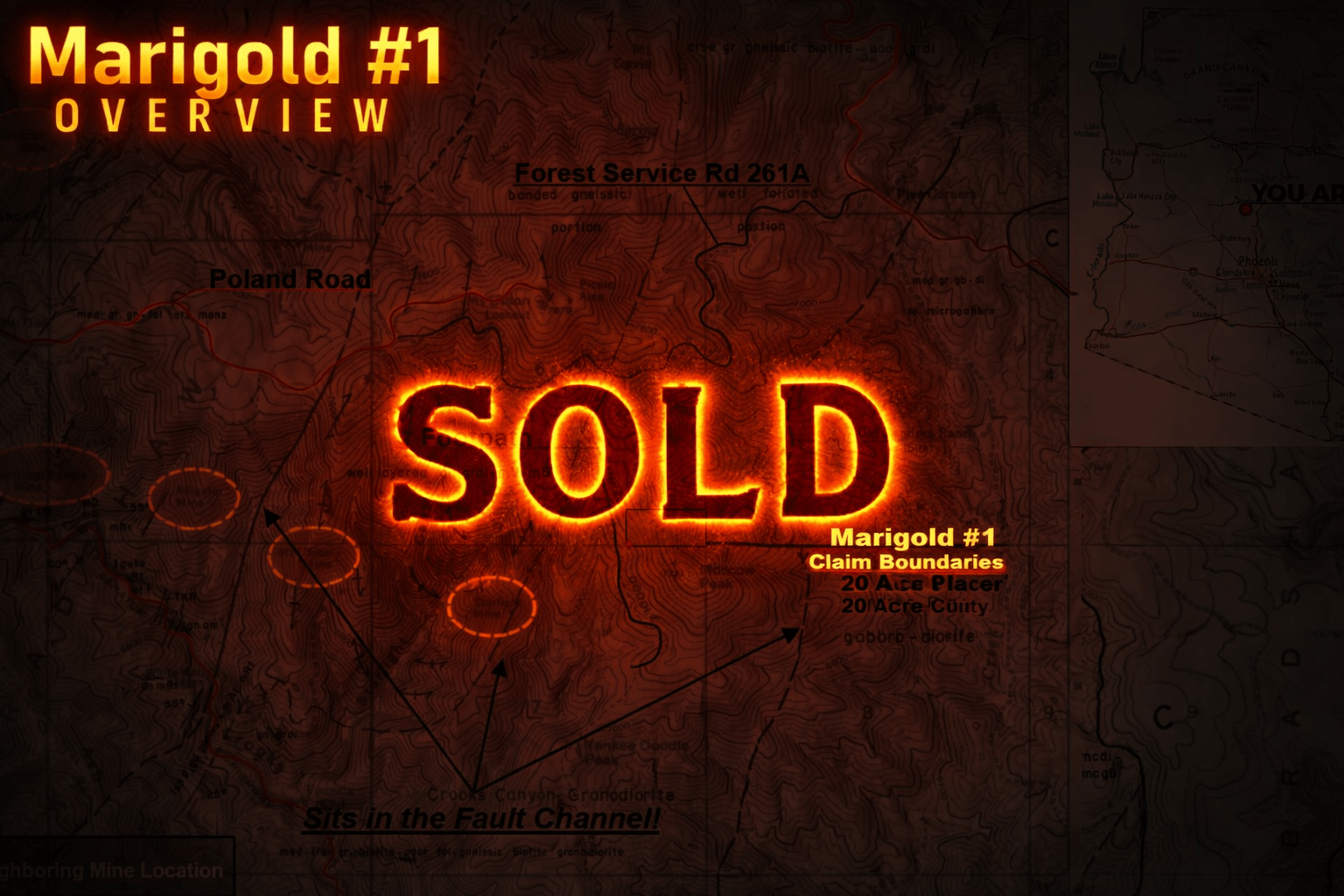 To make matters better, the Treasured Trinity seems to be easy to find within the Turkey Creek District. Neighboring mines in the area have found valuable ore outcroppings visibly close to the surface, owing to the incredible natural geology of this section of the Turkey Creek Mining District: as the meeting place between intrusive plutonic bodies (granodiorite, gabbro-diorite, quartz-monzonite) and meta-volcanic and meta-sedimentary bodies (e.g. migmatite), well-defined, existing fractures and foliations within these host rock bodies have allowed an incredible amount of mineralization through both metamorphic and metasomatic activity - of which, the Marigold & Bumblebee both find themselves in the "fault channel" of!