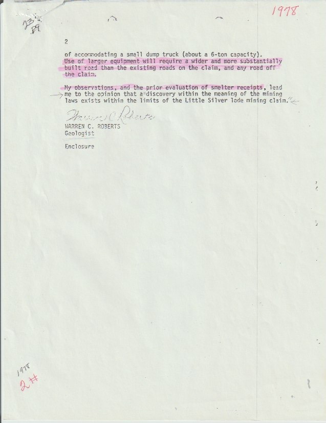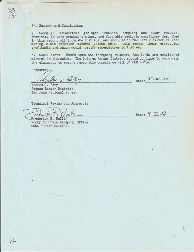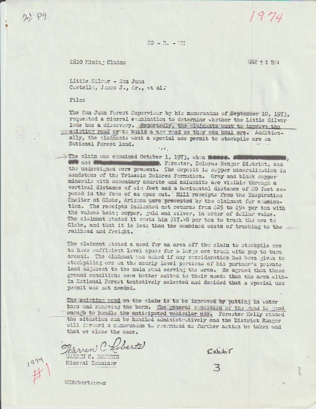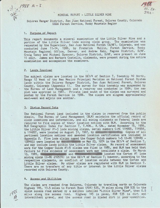 With over 70+ years of recent, well-recorded history, the Virginia Lynn claims have been formally examined by the U.S. Forest Service and the Bureau of Mines on multiple occasions — in 1973, 1977, 1988, and 1990 — with each examination confirming the presence of valuable copper-silver mineralization (reports downloadable here!). The 1988 Forest Service Mineral Report concluded that the land contains mineral values sufficient to justify extraction, and numerous assays of the property's ore reconfirm the same sentiment.