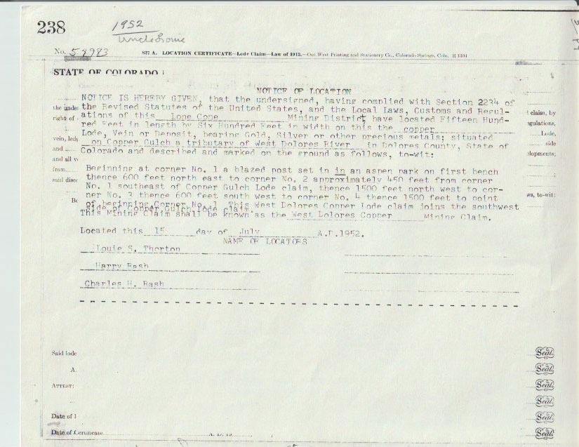 • We handle all the filing and transfer services on your  behalf.  Expect to get official stamped/recorded copies of your paperwork mailed to you from the Dolores County Recorder's Office and the Colorado Bureau of Land Management officiating you as the new claimant within 45 days of purchase.  Then officially enjoy mining gold on your own land!