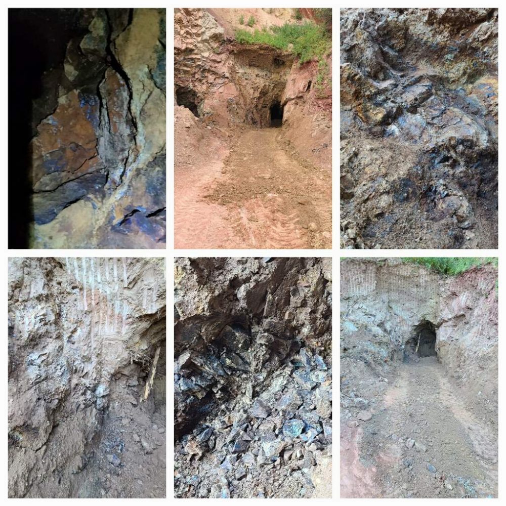 • Oxide, Supergene, Sulphuric Mineral Mix - With the mix of oxide-zone, supergene enriched-zone and sulphuric copper-rich minerals found in the adits of the Virginia Lynn suggests the mine lies in a unique local enrichment area chasing the source of the veins!